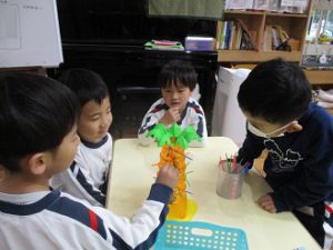 昨年度の年長組にやってもらったことを思い出しながら張り切って準備をしていた子どもたち。