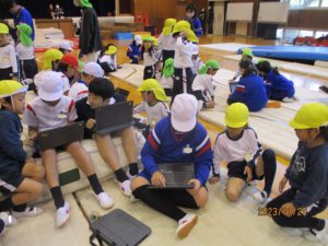 最後には小学生が「何が楽しかった?」と幼稚園の子の感想を聞きながら自分のタブレットに打ち込み、