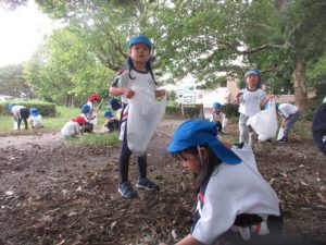 「大きなドングリ見つけたよ」「ダンゴムシもいるね」などと話をしたり、