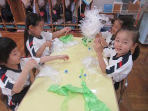 みんなで自分のポンポンを作ることにしました。