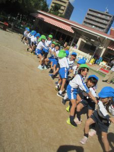 運動会が終わった後には、年長組さんが運動会でやっていた綱引きやリレー、踊りに入れてもらいました。